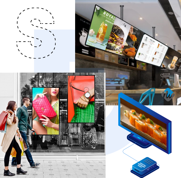 Digital signage, mağaza vitrinleri ve AVM içlerinde kampanya tanıtımları, yönlendirme sistemleri ve etkileşimli müşteri deneyimleri sunar.